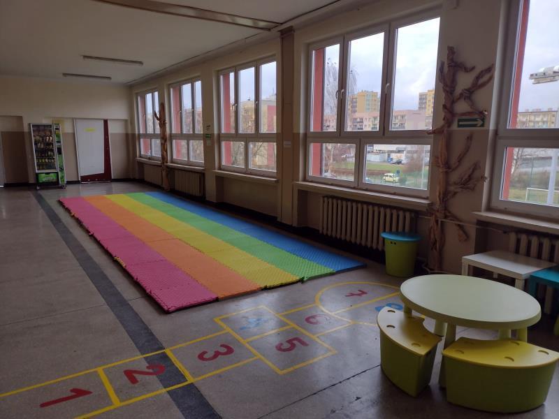- Szkoła posiada nowoczesne pracownie: komputerową i geograficzną, bibliotekę, czytelnię, Kindlotekę, salę do zajęć terapeutycznych "Zakątek ciszy", dwie świetlice, małą i dużą salę gimnastyczną, kompleks boisk wielofunkcyjnych.
