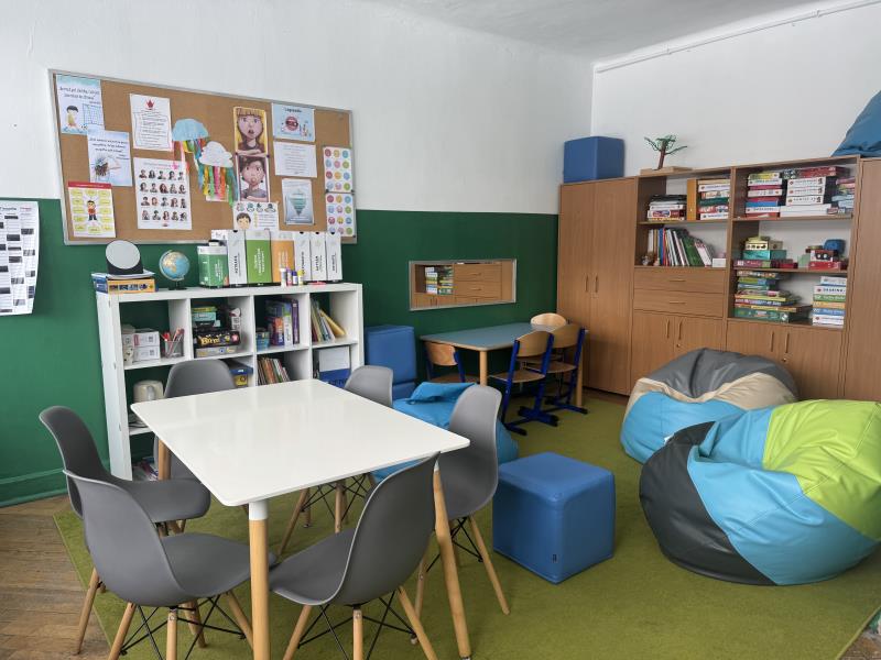 - biblioteka z kącikiem czytelniczym i 3 stanowiskami komputerowymi
