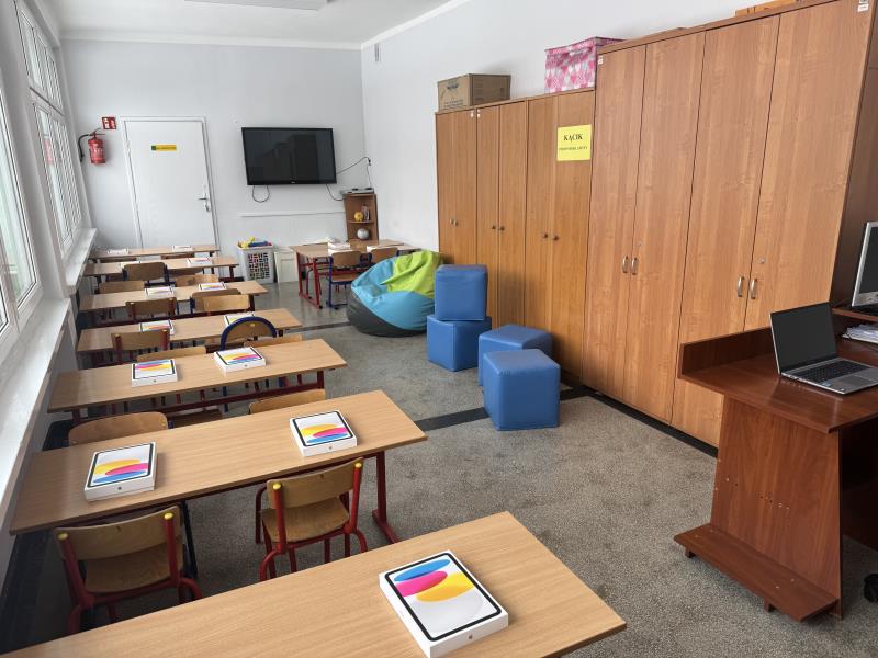 Każda sala lekcyjna posiada nowoczesne monitory interaktywne
